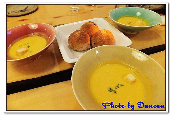 4. 這是前菜啦,南瓜濃湯跟麵包。